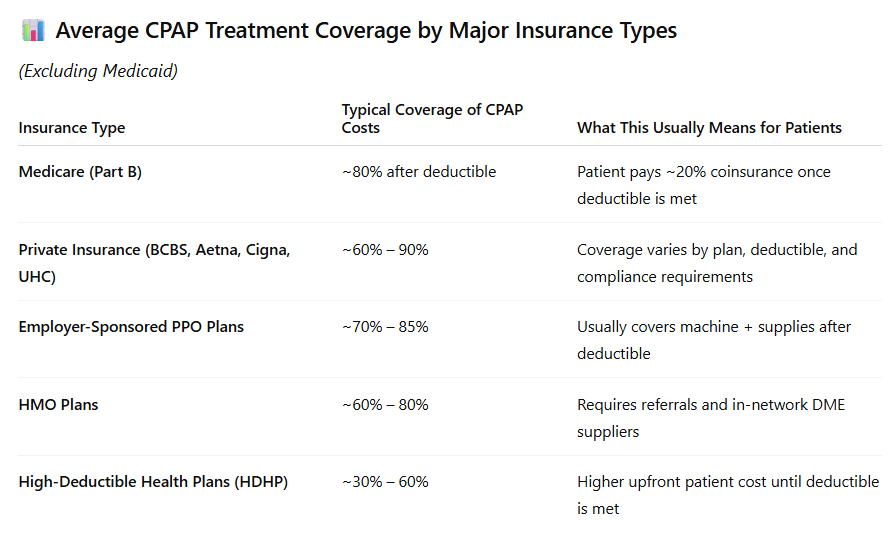 Most health insurance plans, Medicare, and Medicaid provide at least partial coverage for CPAP machines when prescribed for diagnosed sleep apnea. Coverage details vary by plan.