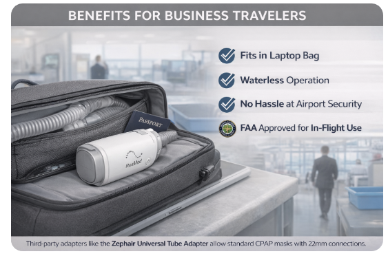 The waterless system offers significant convenience advantages: no water chamber to fill or clean, no risk of spills in your luggage, no need to find distilled water in foreign countries, and no condensation buildup (“rainout”) in your tubing. For travelers, these benefits often outweigh the limitations.
