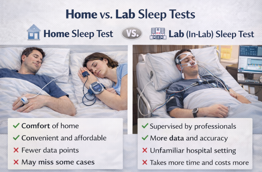 While home tests are suitable for many people, there are situations where an in-lab polysomnography may be recommended instead. For a side-by-side comparison, the home vs lab sleep tests guide on SLIIIP breaks down the key differences.