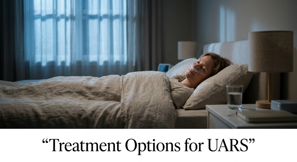 Positional therapy: Some UARS patients have position-dependent symptoms worse on their back, better on their side. Positional devices or behavioral strategies to maintain a lateral sleep position can provide meaningful benefit in these cases.